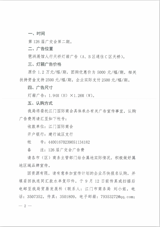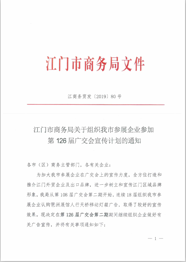江门市商务局关于组织我市参展企业参加第126届广交会宣传计划的通知