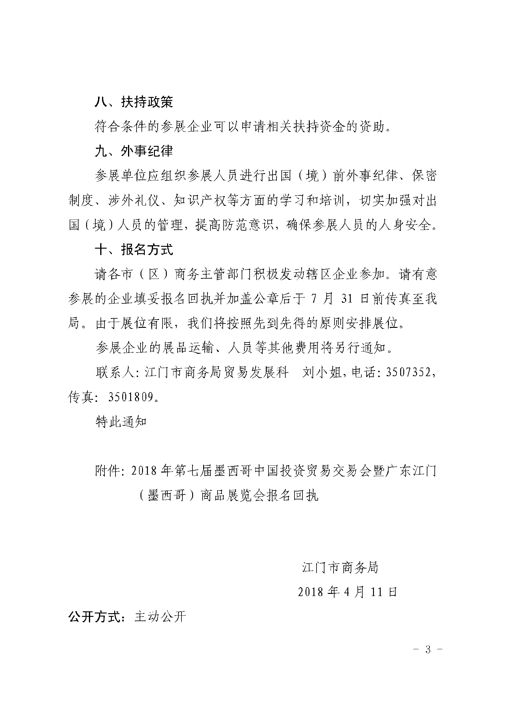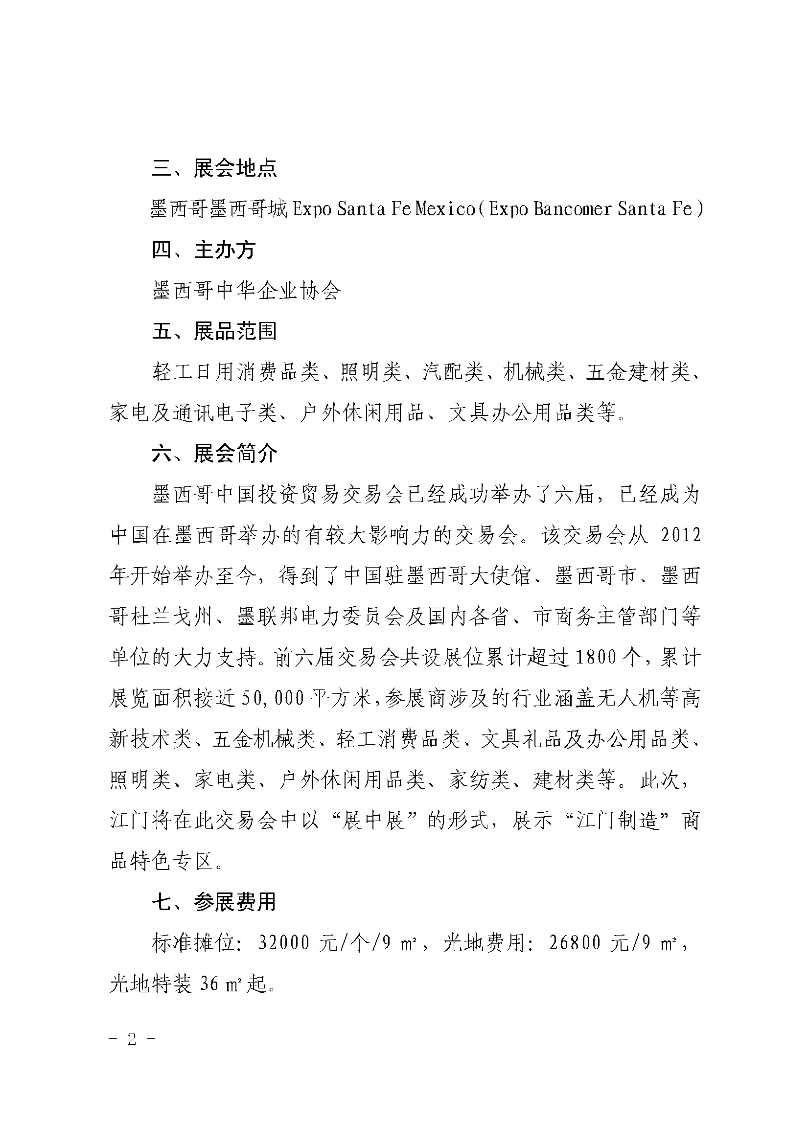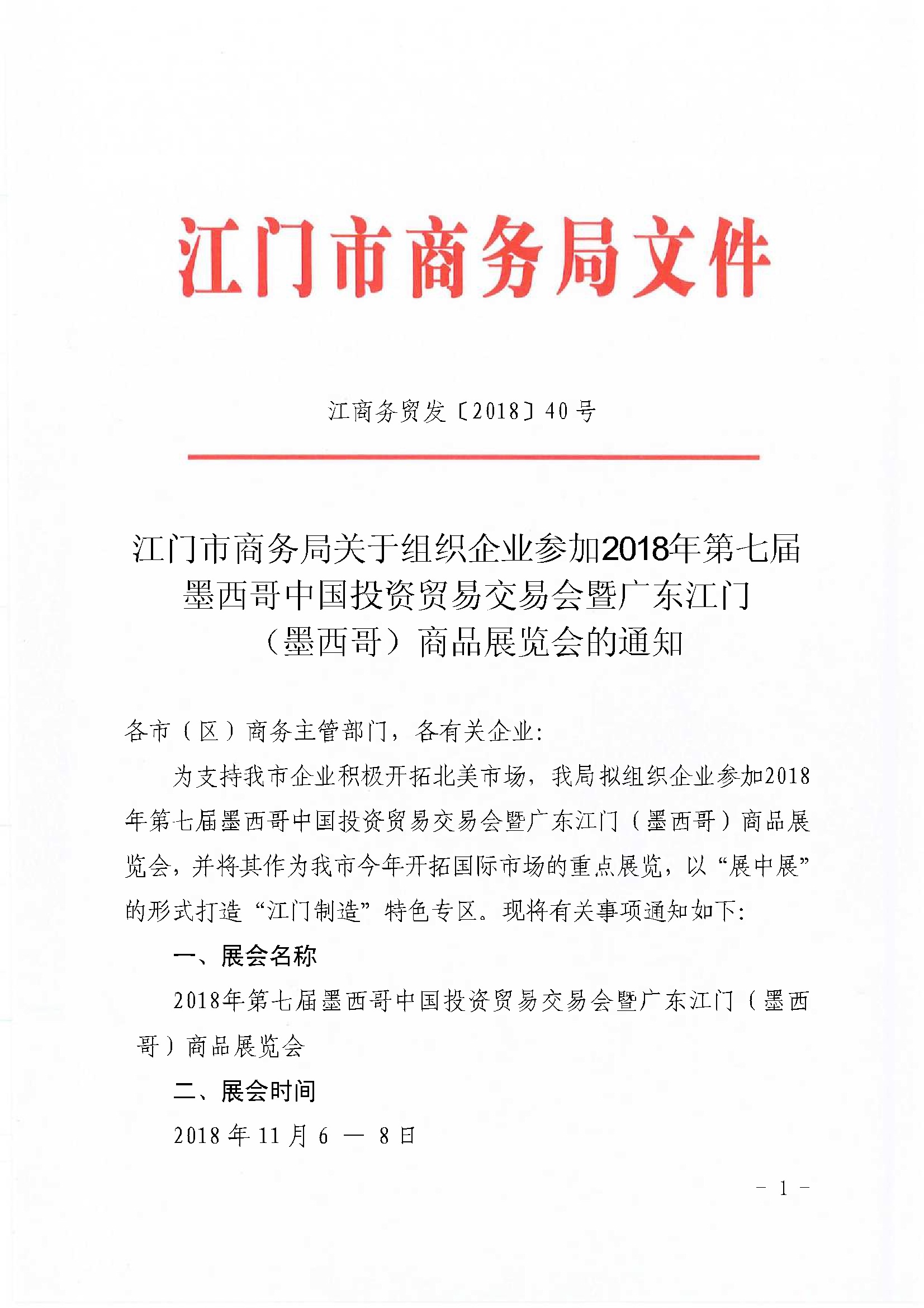 江商务贸发[2018]40号_江门市商务局关于组织企业参加2018年第七届墨西哥中国投资贸易交易会暨广东江门(墨西哥)商品展览会的通知