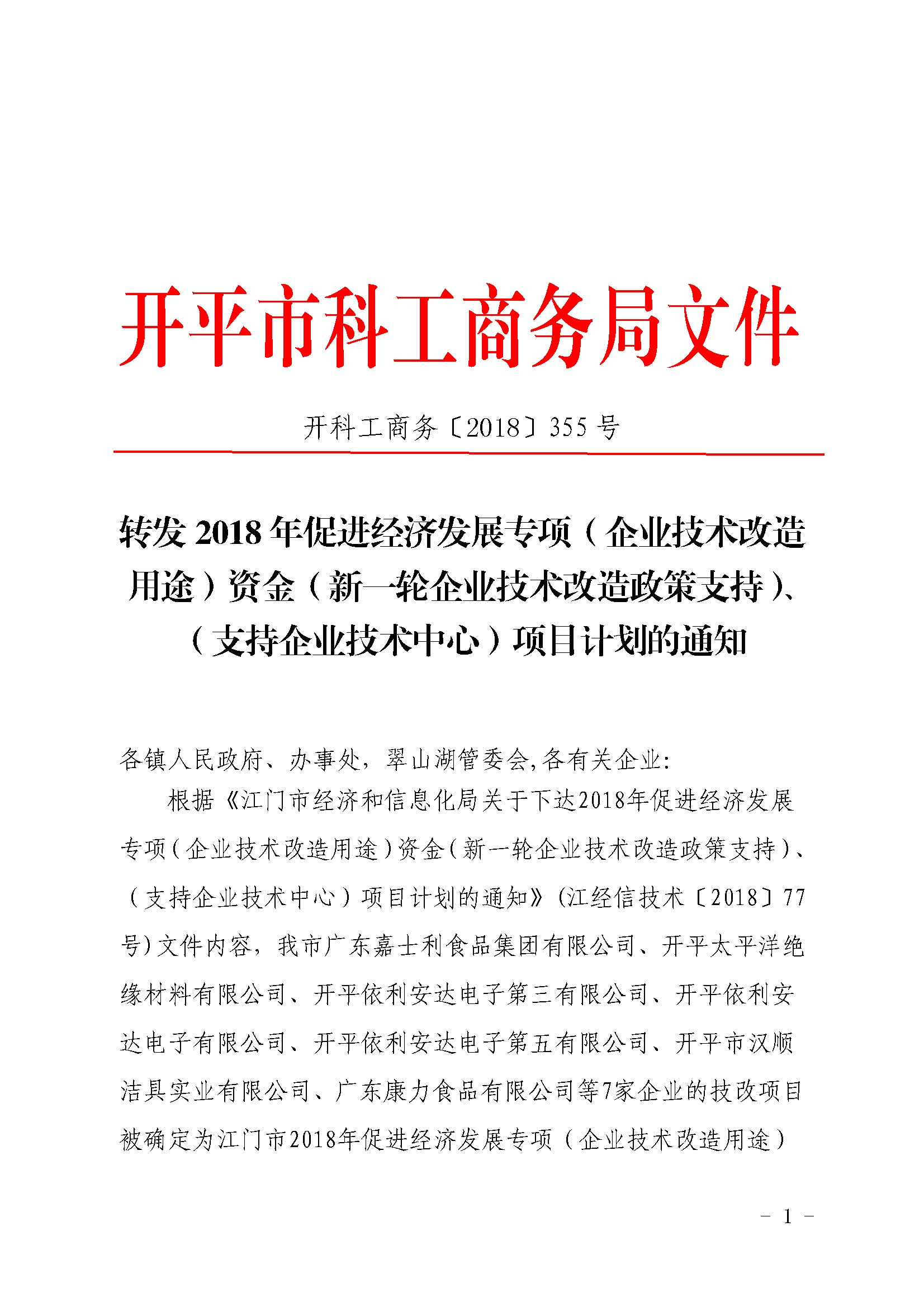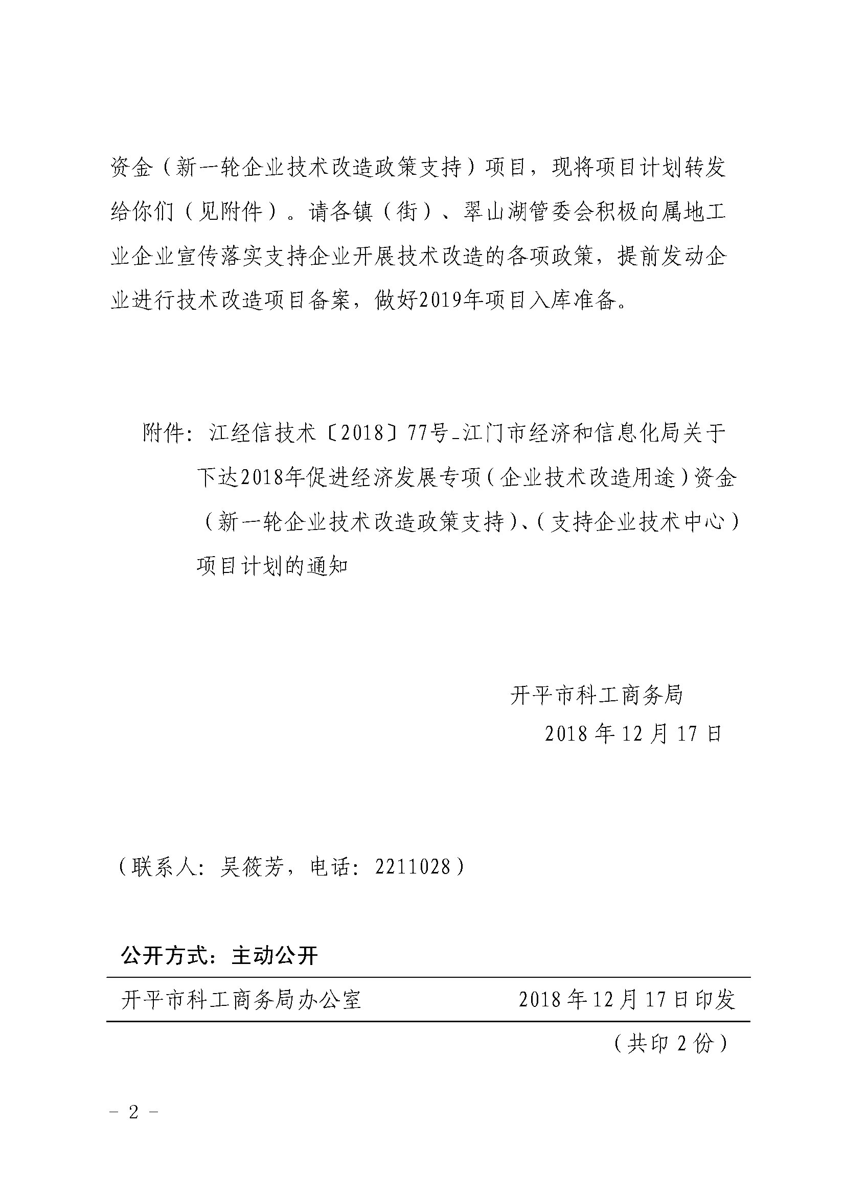 附件:江经信技术〔2018〕77号_江门市经济和信息化局关于下达2018年促进经济发展专项(企业技术改造用途)资金(新一轮企业技术改造政策支持)、(支持企业技术中心)项目计划的通知