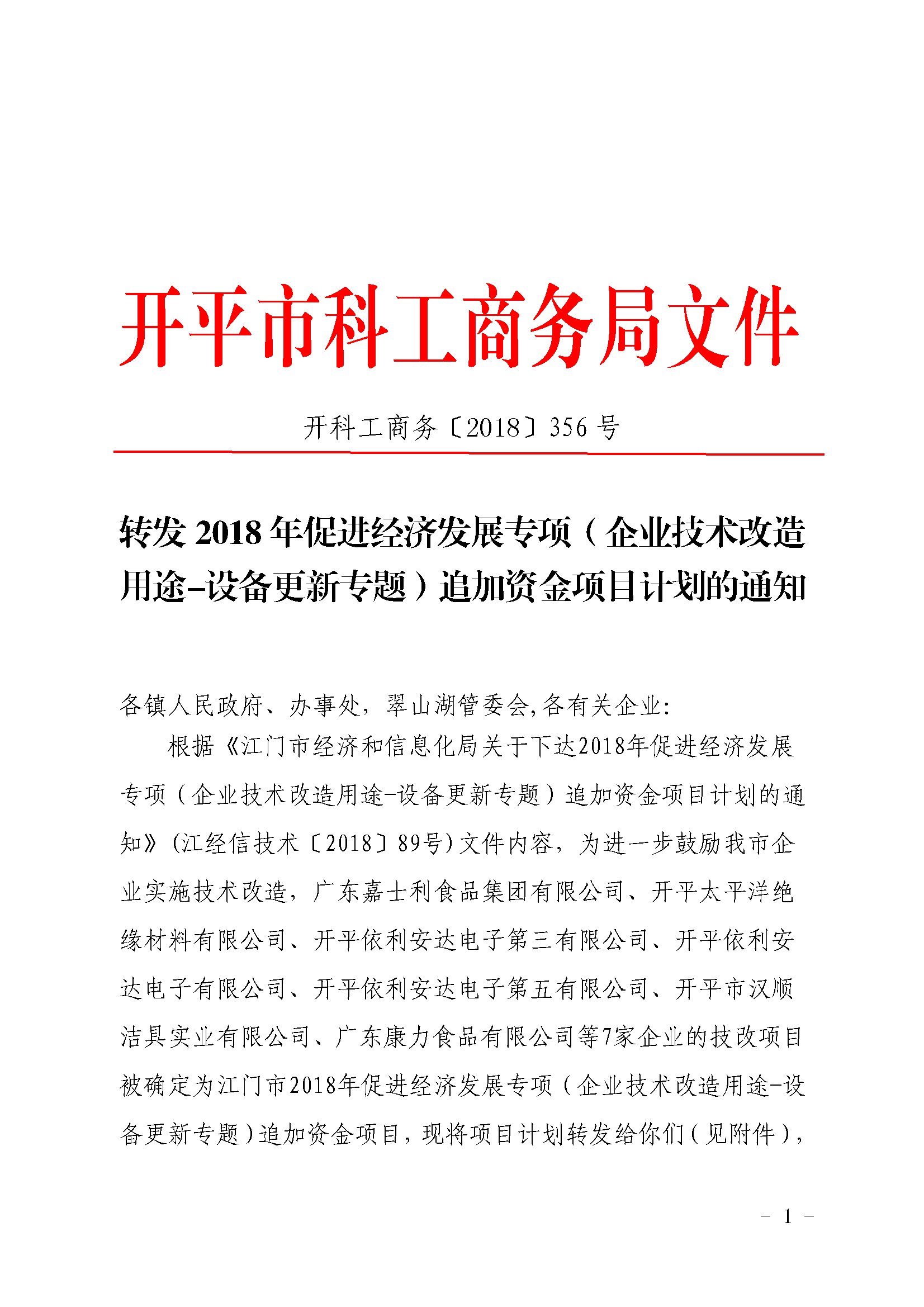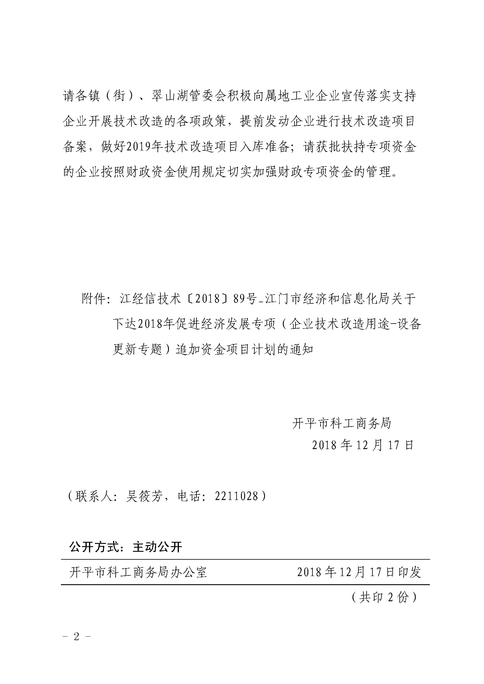 附件:江经信技术[2018]89号_江门市经济和信息化局关于下达2018年促进经济发展专项(企业技术改造用途-设备更新专题)追加资金项目计划的通知