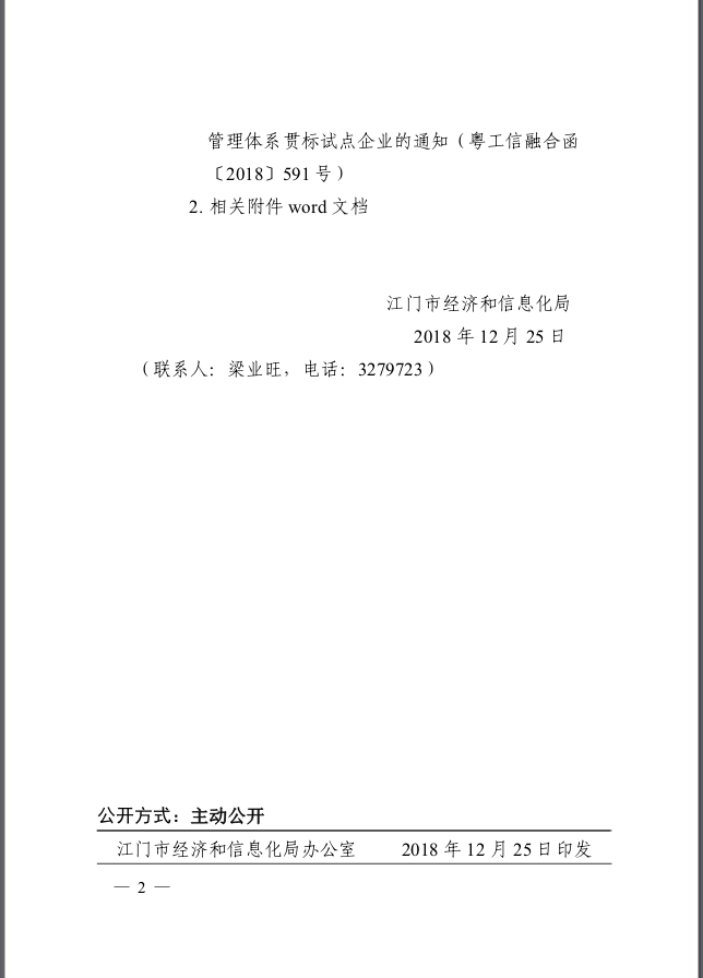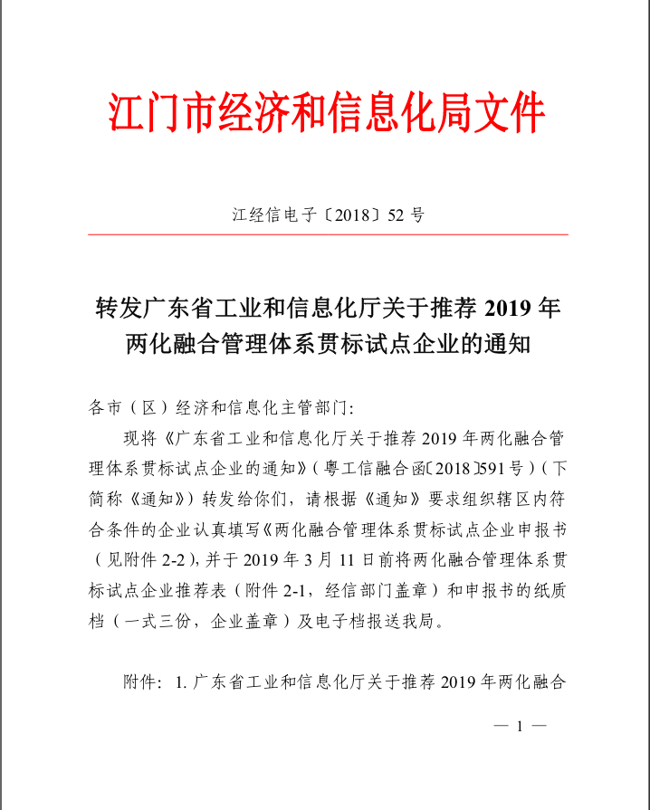 江经信电子[2018]52号_转发广东省工业和信息化厅关于推荐2019年两化融合管理体系贯标试点企业的通知