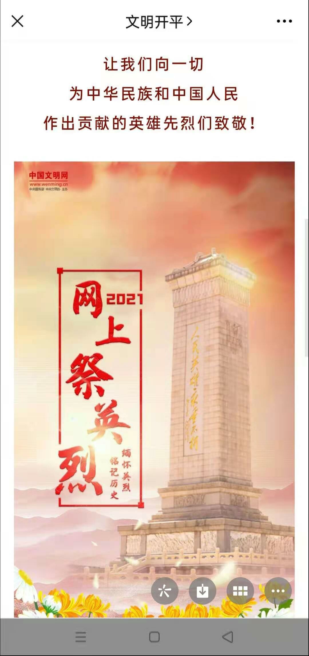 市统计局开展2021年“网上祭英烈”活动 为大力弘扬烈士精神,传承红色基因,弘扬优良传统,践行社会主义核心价值观,近期,市统计局结合《江门市新型冠状病毒肺炎疫情防控指挥部办公室关于做好2021年全市清明节祭扫工作的通知》“推广绿色文明安全祭扫”要求,组织干部职工开展“网上祭英烈”活动,云端向革命英烈寄托哀思、致敬缅怀。 活动中,局干部职工在“文明亚星