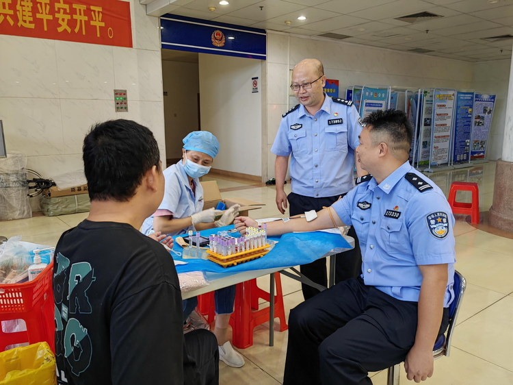 公安局开展2023年度无偿献血活动。在公安局党委委员、政工室主任黄伟增的带领下,近150名民辅警积极响应、踊跃参与,用热血传递爱心,用热血践行使命。 活动现场,参与无偿献血的民辅警热情高涨、精神饱满,仔细聆听医务人员讲解注意事项,自觉排队,认真填表、体检、初筛,走上采血车捐血,整个献血活动氛围轻松有序。此次活动累计献血29640毫升,另外有3个造血干细胞采样加入中华骨髓库。 参与献血的同志中,既有工作多年的老同志,也有参加工作的新警同志,还有多次献血的老党员;既有“铁骨铮铮”的特警,也有“巾帼不让须眉”的女警。大家纷纷表示,无偿献血是关系着人民群众身体健康和生命安全的社会公益事业,今后将会继续支持无偿献血工作,用实际行动践行“人民公安为人民”的初心和使命。