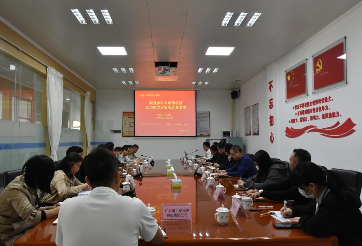 人行、市属6大集团公司等有关负责人员参加培训。 培训班上,广州银行总行投行部杨露速老师围绕“专项债底层逻辑探究、专项债国家层面审核要点、专项债风险审计关键要素、国有企业承接专项债政策分析、国有企业承接专项债实施路径”五个方面,结合周边省市国有企业参与专项债案例分享,为与会人员作了题为《积极参与专项债项目,助力地方国资高质量发展》专题培训。 课后,各学员就自身单位的主业、项目申报专项债中存在的问题开展交流讨论并纷纷表示,通过本次培训更深入了解债券申报投向及申报要求,将准确把握政策要求,用足政策红利