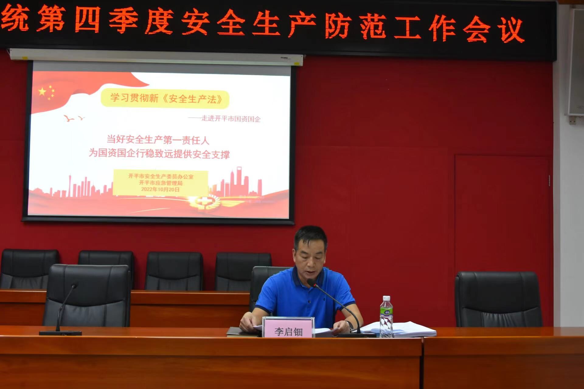 为不断加强国资国企安全生产工作,进一步夯实企业安全生产主体责任,10月20日下午,市资产办召开国资系统第四季度安全生产防范工作会议。市资产办、市直五大集团公司、企管企业公司全体班子成员、有关部门负责人参加会议。市应急管理局党组成员、副局长张灿思等一行应邀出席并作专题培训。 会议首先传达学习习近平总书记关于应急管理、安全生产、防灾减灾的重要论述。市直五大集团公司、企管企业公司分别汇报今年以来安全生产工作情况以及下阶段工作计划。 会议指出,在肯定工作的同时,必须要清醒地认识到第四季度是全年安全生产工作最紧张、最关键、最艰巨的时期,是各类事故的易发多发期,要求各企业要充分认清当前形势,正视安全生产工作中存在的一些突出问题和薄弱环节,严格落实企业安全生产主体责任,落细落实各项防范措施,确保市国资系统形势稳定。 会上,市应急管理局党组成员、副局长张灿思以“学习贯彻新《安全生产法》,当好安全生产第一责任人,为国资国企行稳致远提供安全支撑”为题,结合新修订的《安全生产法》、安全生产事故案例分析、企业落实安全生产主体责任等6方面,从安全生产“怎么看、怎么履、怎么防”为切入点,为与会人员作了专题培训。 会议最后,市直国企工委书记、资产办主任张伟赞强调,国资国企要把安全生产放在首位,持续加大安全生产方面的投入;要结合企业实际和行业特性,深化重点行业领域治理,落实落细各项工作举措,坚决遏制事故发生;要筑牢疫情防控屏障,扎实维稳安保工作,推动国资系统安全形势持续稳定向好,以实际行动和成效为党的二十大胜利召开营造更加良好的安全稳定环境。