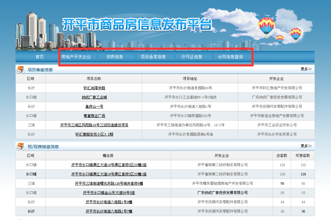 2、此网站具备查询我市房地产开发企业、资质信息、项目备案信息、许可证信息,合同信息查询的功能,前四项功能只需输入部分相关信息便可查询。