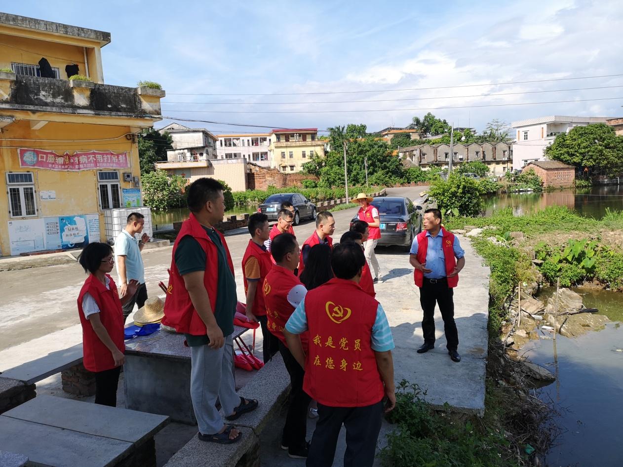 在这次结对共建主题党日+乡村振兴活动中,市住建局党总支部党员一行先来到了下湾旧村原卫生服务站门前,实地了解因受2018年台山“山竹”影响塘基倒塌情况,移交塘基重建帮扶资金,并顶着炎炎烈日,拿起扫把、铁铲清理塘基周边垃圾和卫生死角。附近乘凉的村民看到市住建局帮扶既出钱又出力,真真切切为村民办实事、办好事之后纷纷表示赞叹!