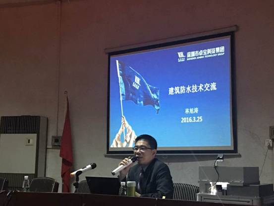 为加强我市建筑施工质量,提升我市建筑防水工程质量技术水平,加强建筑防水施工管理,减少和杜绝建筑渗漏等质量常见问题,维护广大群众利益。以及响应住建部“建设工程质量治理两年行动”的活动安排,我局与市建设商会于2016年3月25日邀请深圳市卓宝科技集团副总裁、总工程师林旭涛,就建筑渗漏原因、先进防水系统技术要点等内容,进行专题研讨会,我市各房地产开发、设计、监理、建筑公司等相关人员共200余人出席参加本次研讨会。