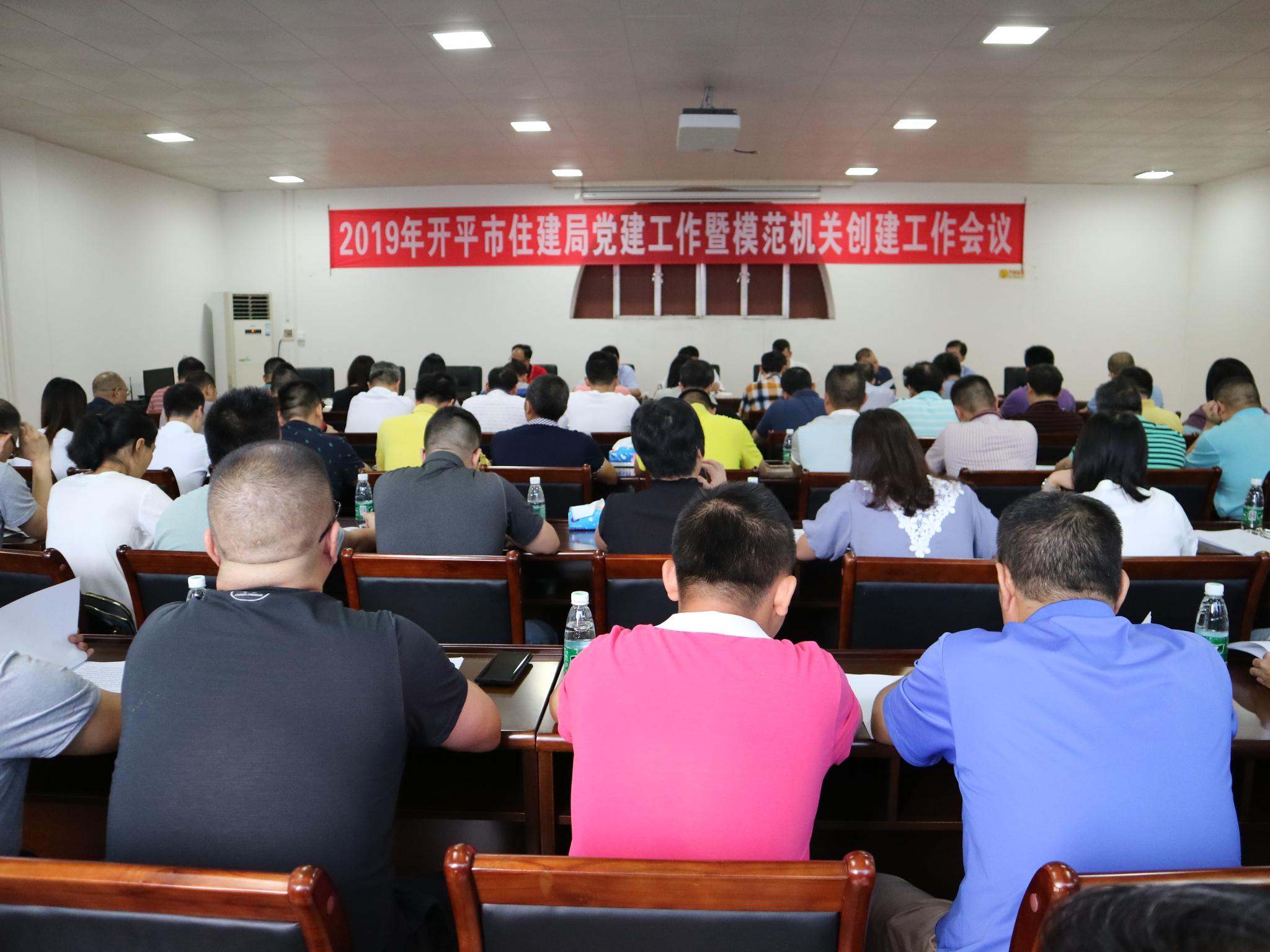 2019年6月14日上午,市住建局在四楼会议室召开2019年党建工作暨模范机关创建工作会议,会议由党组副书记、副局长梁羽行主持,住建局党总支全体党员、机关全体人员、下属事业单位和托管企业负责人共90多人参加了会议。