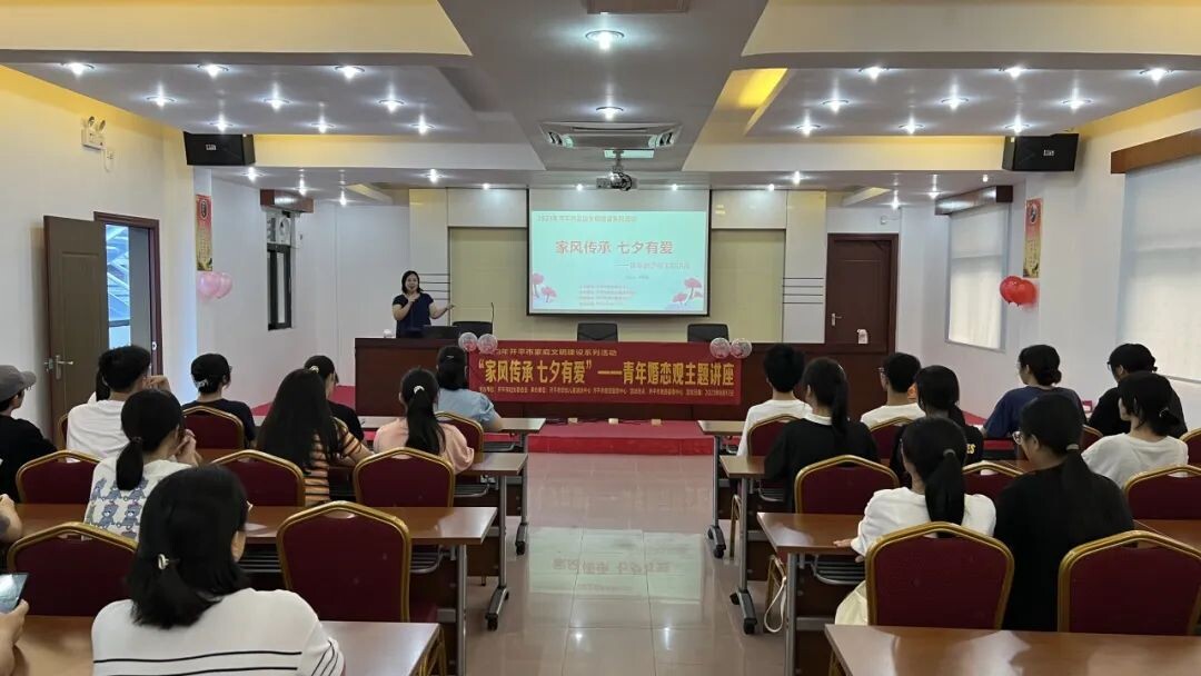 七夕节,是我国传统节日中最具浪漫色彩的节日。为传承弘扬中华优秀传统文化,充分发挥传统节日文化涵育功能,引导广大青年树立正确的恋爱观、婚姻观、家庭观,培育优良家风。8月17日,由亚星官网 妇女联合会主办,亚星官网 妇女儿童活动中心承办,在亚星官网 家庭教育指导服务中心开展“家风传承 七夕有爱”——青年婚恋观主题活动。