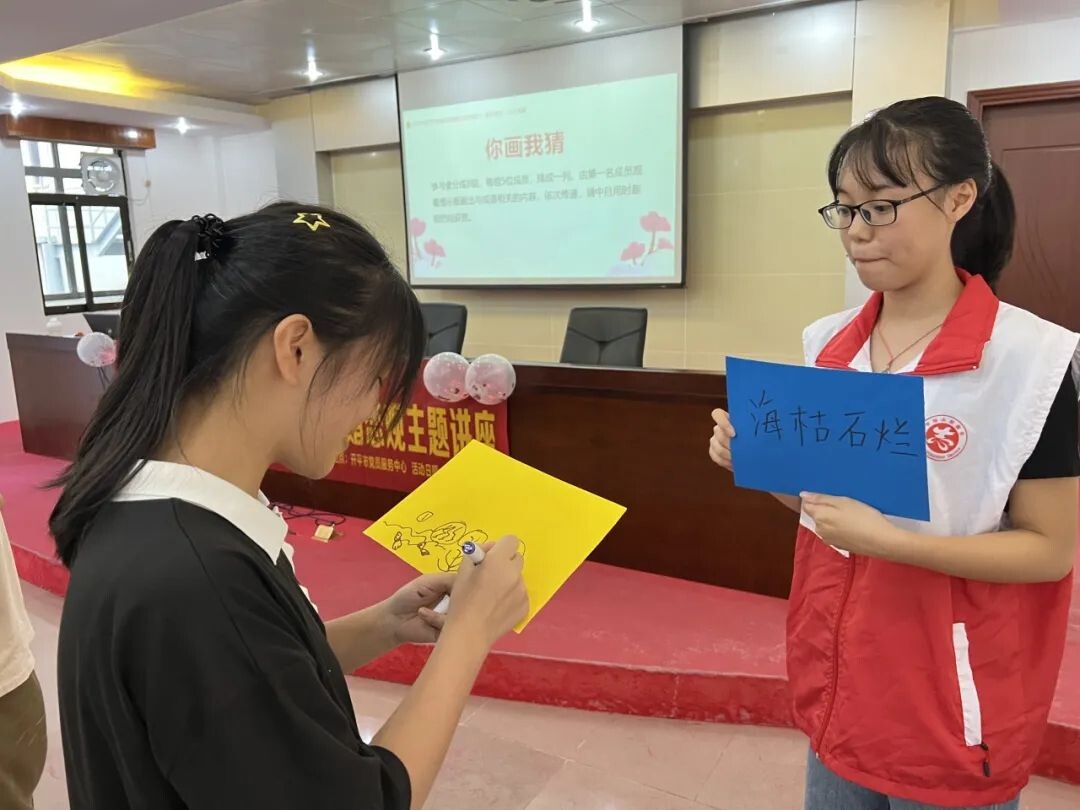 巾帼志愿者带领青年通过你划我猜、爱心传递和勇敢说出来等一系列互动游戏,促进青年朋友之间的沟通和交流。青年朋友在游戏过程中相互配合,增进了解,现场气氛十分活跃。