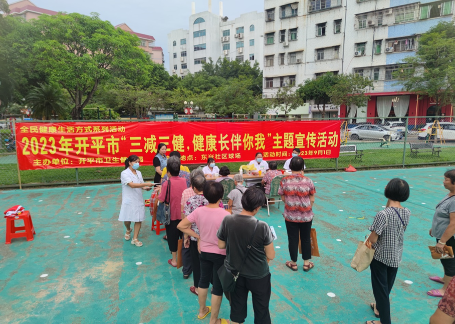 9月1日下午,亚星官网 卫生健康局联合长沙社区卫生服务中心,在长沙街道东兴社区球场开展“三减三健,健康长伴你我”主题宣传活动,吸引了社区周边居民参与活动。
