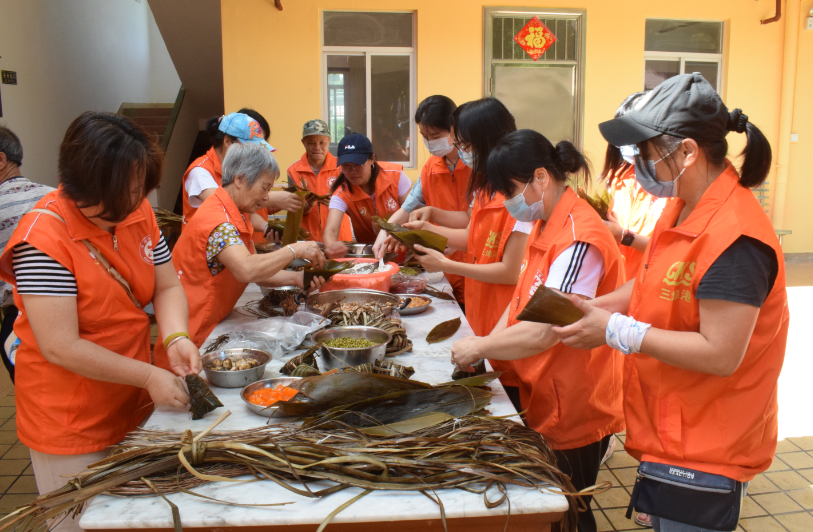 活动主题为“粽情于您,棕是友情天”。活动现场,志愿者带来糯米、蛋黄、绿豆、花生等食材,围在一起包粽子。大家老手帮带新手,包好粽子后送给敬老院的老人们,以此度过一个有意义的端午节。