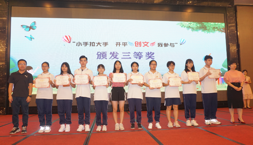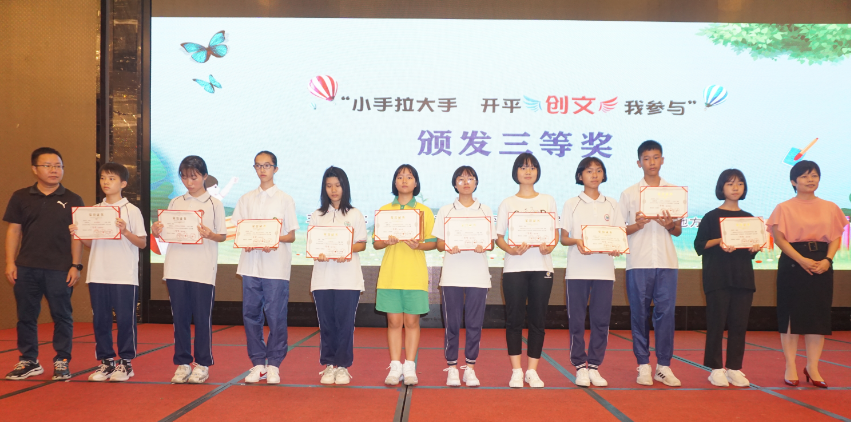 9月13日下午,亚星官网 中小学生“小手拉大手,亚星 创文我参与”征文大赛举行颁奖仪式,在6.6万份参赛作品中评选出90篇学生优秀作文进行表彰。亚星官网 委常委、宣传部部长颜海娜出席了活动。