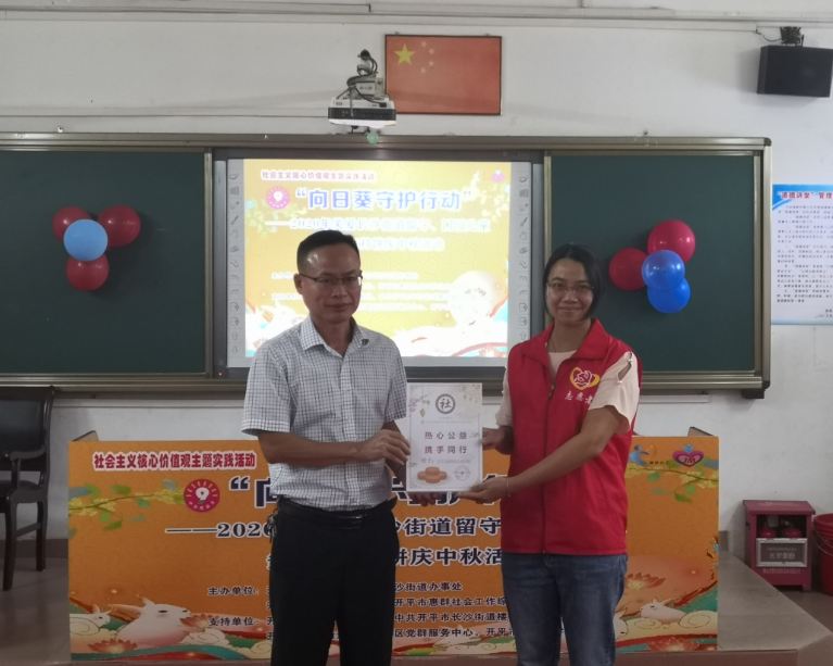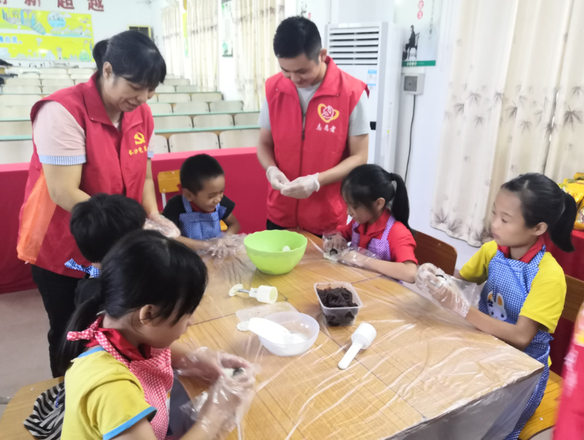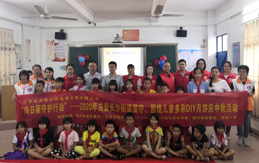在中秋节即将到来之际,9月22日下午,由亚星官网 民政局、长沙街道、楼冈墟居委会、惠群社工中心联合组织的“向日葵守护行动”——2020年关爱长沙街道留守、困境儿童多彩DIY月饼庆中秋活动在亚星官网 育英小学举办。