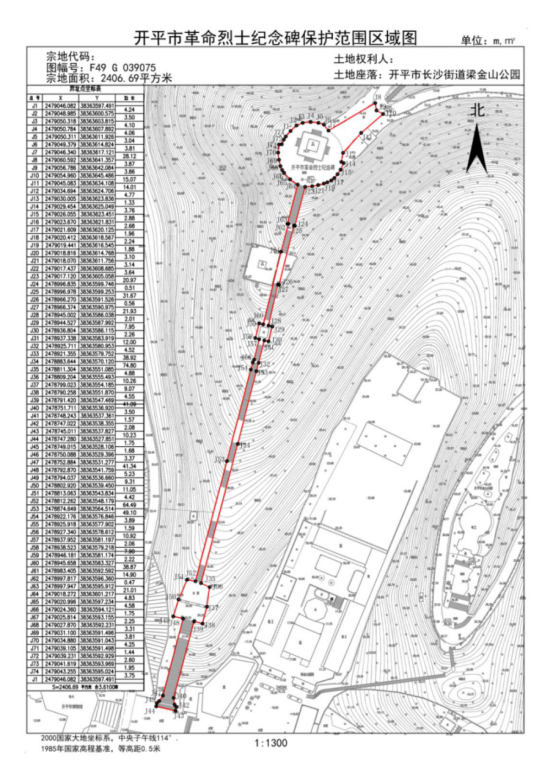 保护范围:保护红线往外延伸5米,红线内面积2406.69平方米。