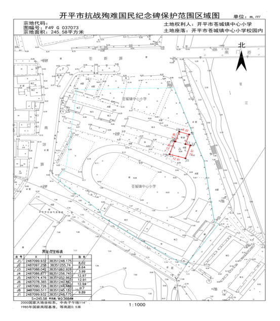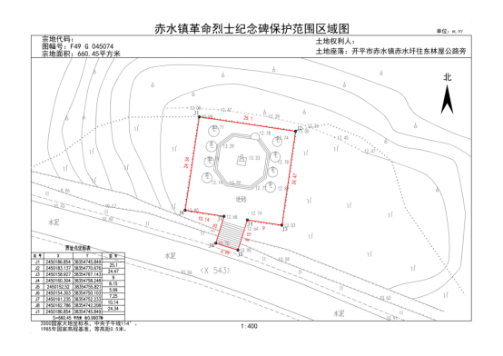 保护范围:保护红线往外延伸5米,红线内面积245.58平方米(现有建筑物保持原状)