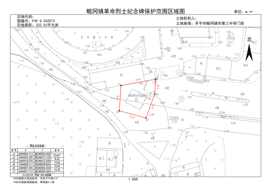 保护范围:保护红线往外延伸5米,红线内面积332.52平方米(现有建筑物保持原状)