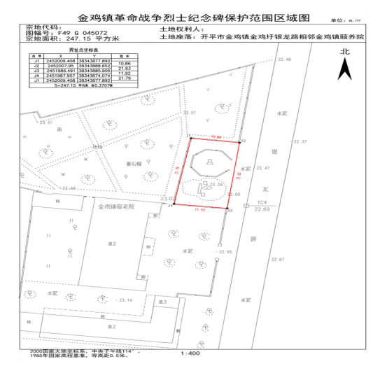 保护范围:保护红线往外延伸5米,红线内面积247.15平方米(现有建筑物保持原状)