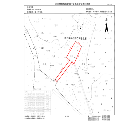保护范围:保护红线往外延伸5米,红线内面积143.44平方米。