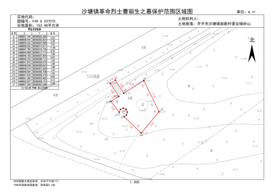 保护范围:保护红线往外延伸5米,红线内面积153.48平方米。