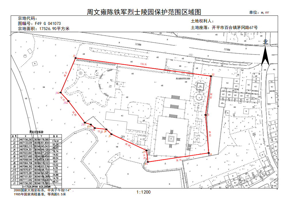 保护范围:保护红线往外延伸2米,红线内面积144.32平方米(现有建筑物保持原状)