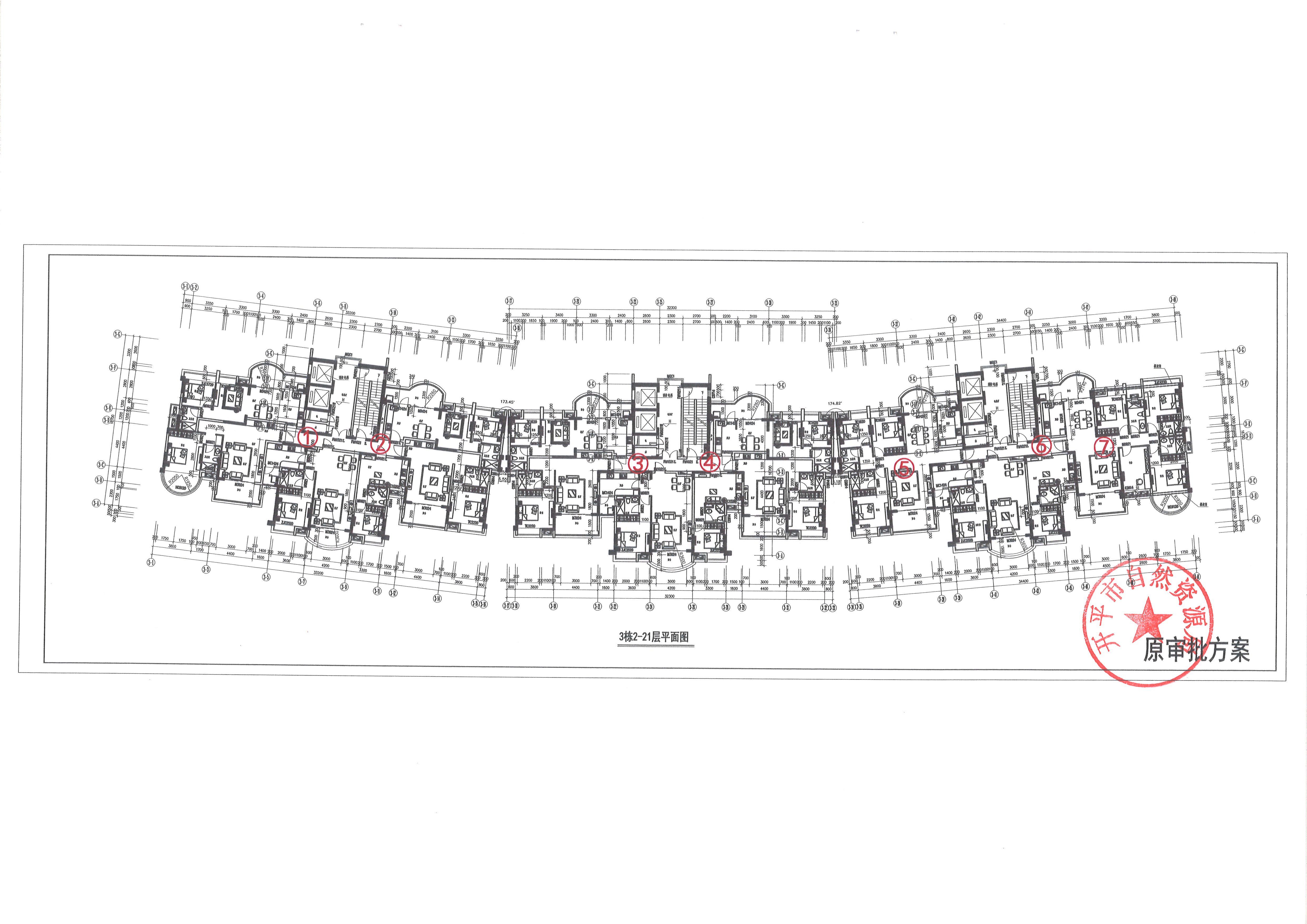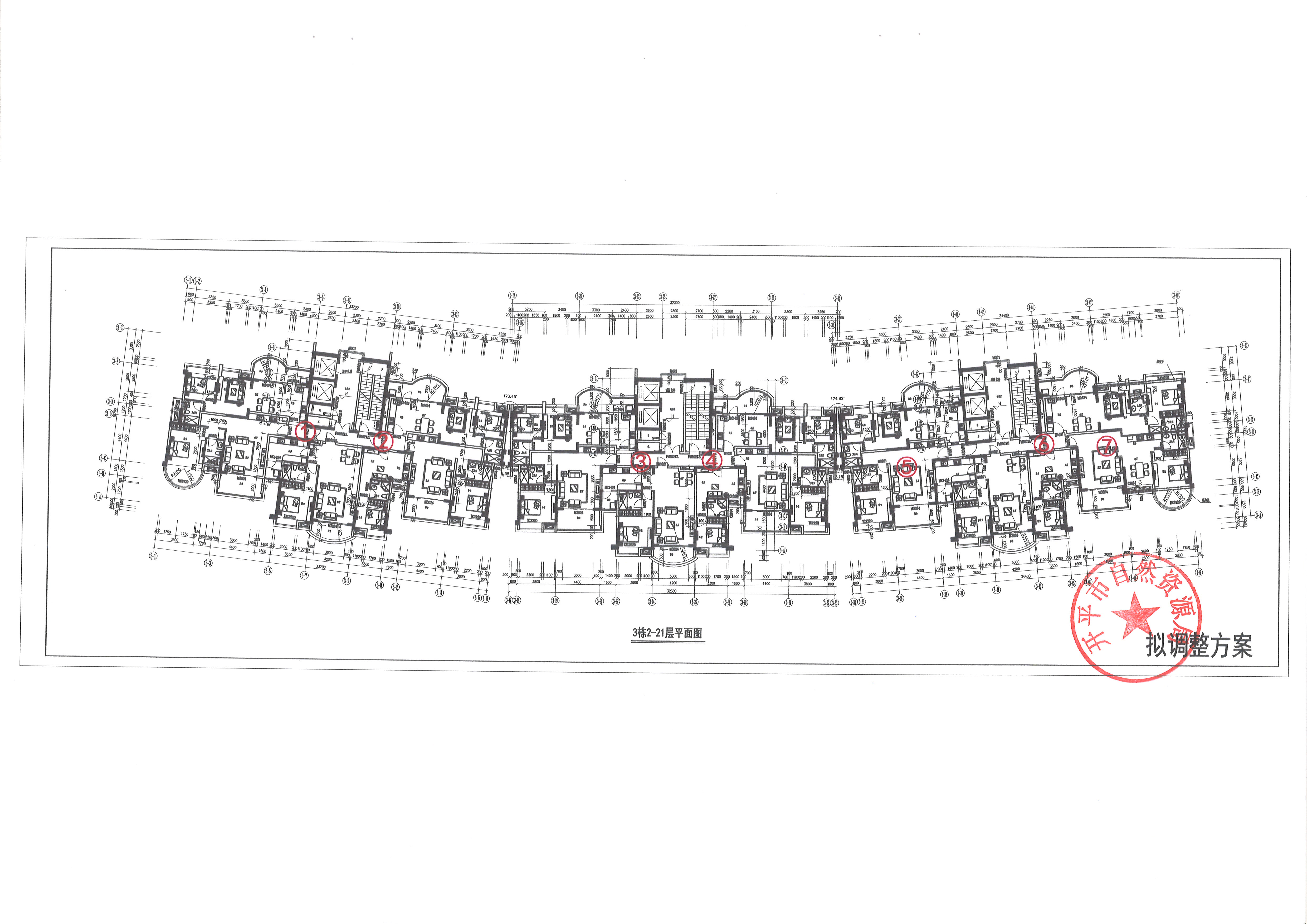 2-21层:①3-6至3-8轴交3-D轴至3-E轴增加一个门口;②3-10轴交3-D轴至3-E轴增加一个门口;③3-23轴交3-D轴至3-E轴增加一个门口;④3-27轴交3-D轴至3-E轴增加一个门口;⑤3-34至3-40轴交3-G轴至3-B轴调整户型布局,原一户住宅调整为两户住宅;⑥3-44轴交3-D轴至3-E轴增加一个门口;⑦3-44至3-49轴交3-G轴至3-B轴调整户型布局,原一户住宅调整为两户住宅。