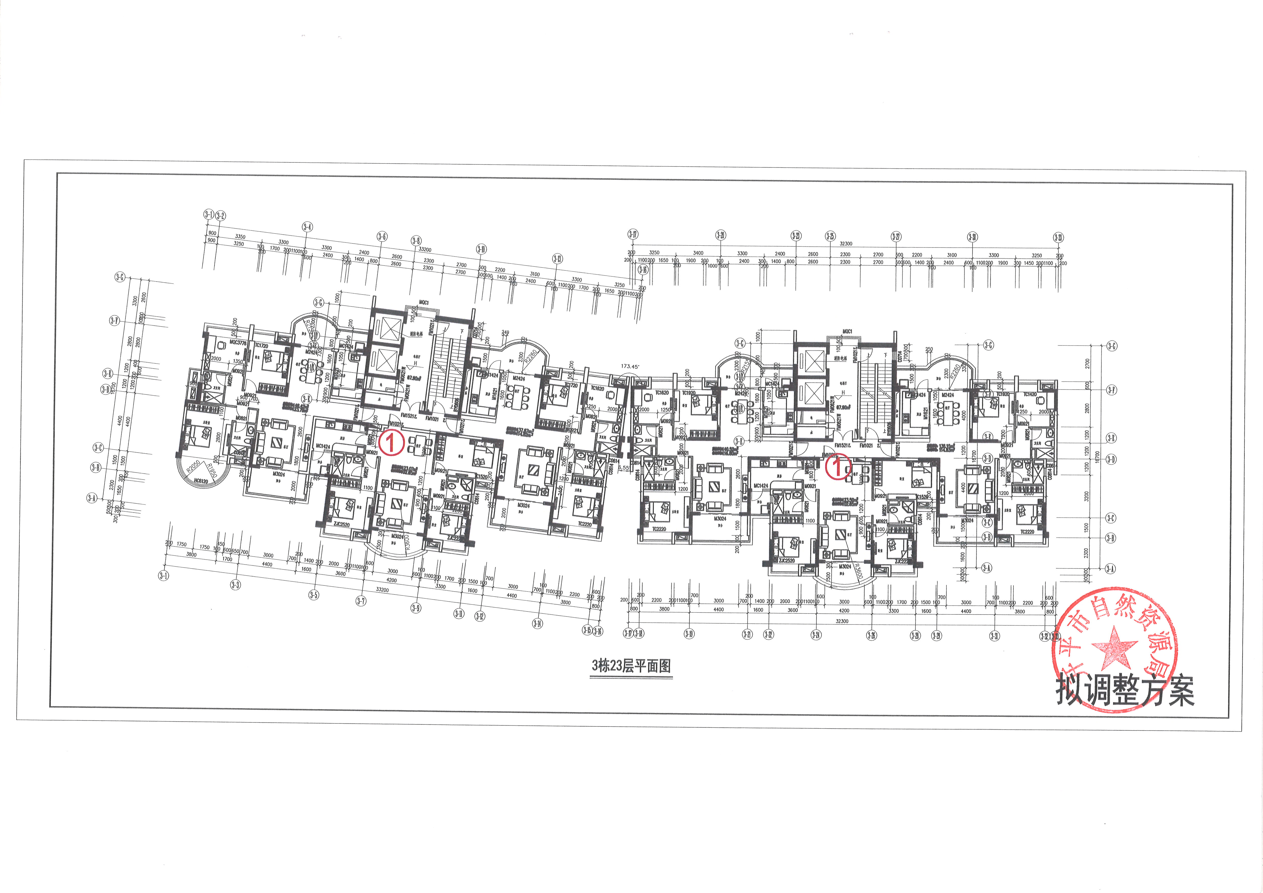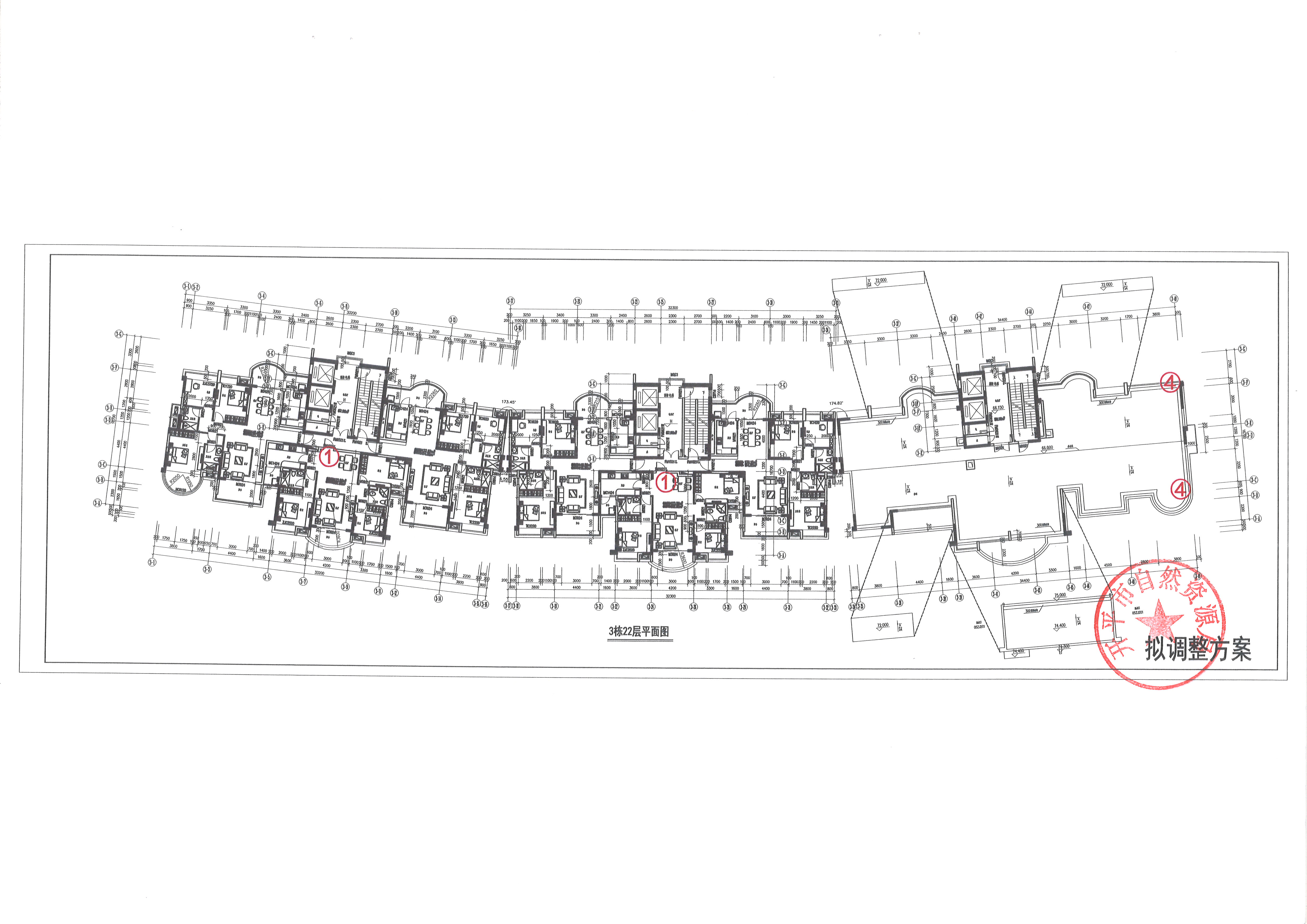 22层、23层:①3-1至3-33轴交3-A轴至3-G轴加建22层、23层(增加12户住宅)。