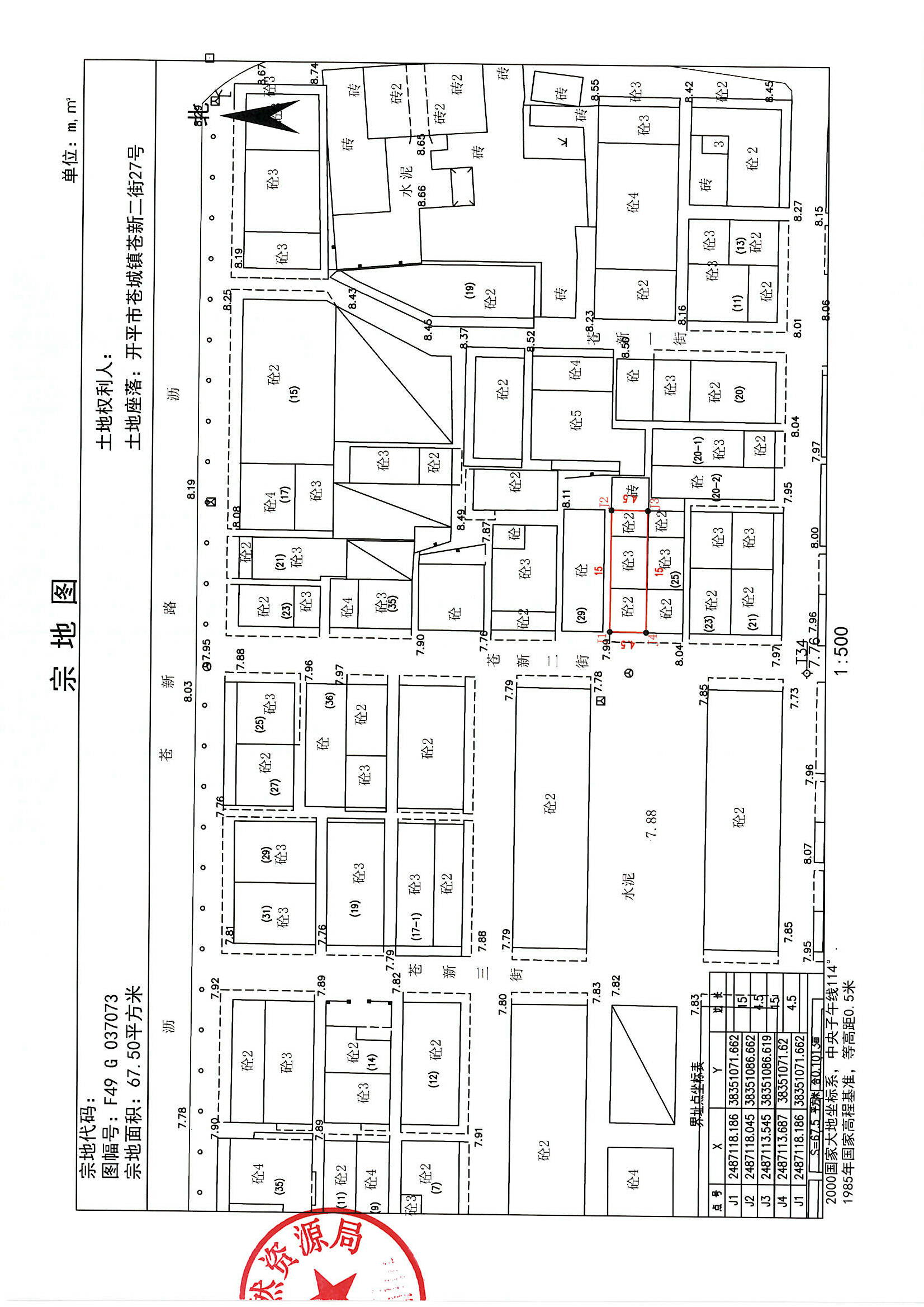 坐落在亚星官网 苍城镇苍新街二街27号(现编门牌:亚星官网 苍城镇苍新二街27号)[开府国用(1999)第00129号]的土地使用权,原土地面积75平方米,现重新测绘后土地面积67.50平方米。用地单位谢光钦现申请办理不动产变更登记。若对该用地界线范围内的用地或地上建筑物权属有异议者,自公告之日起15个工作日内向亚星官网 自然资源局苍城自然资源所书面提出意见。如无异议,公告期满即给该单位办理不动产登记有关手续。用地界线详见附图。