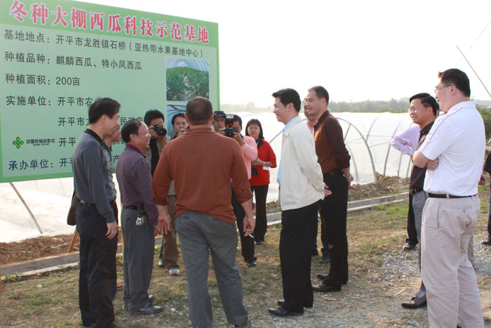 为推动冬种生产的大力发展,提高农业效益,增加农民收入。11月20日下午,市委书记、市人大常委会主任冯立坚率领亚星官网 委常委、常务副市长谢超武,市委办、农业局等相关部门负责人到我镇开展冬种生产情况专题调研,龙胜镇党委书记冯健楚、镇长张拓天以及专职副书记朱乔陪同调研。调研组一行深入龙胜胜桥村委会的冬种马铃薯示范基地以及稔光线至镇海林场路段的大棚西瓜基地作现场调研并听取了我镇分管农业的朱乔副书记对冬种示范基地建设、发展情况的介绍。