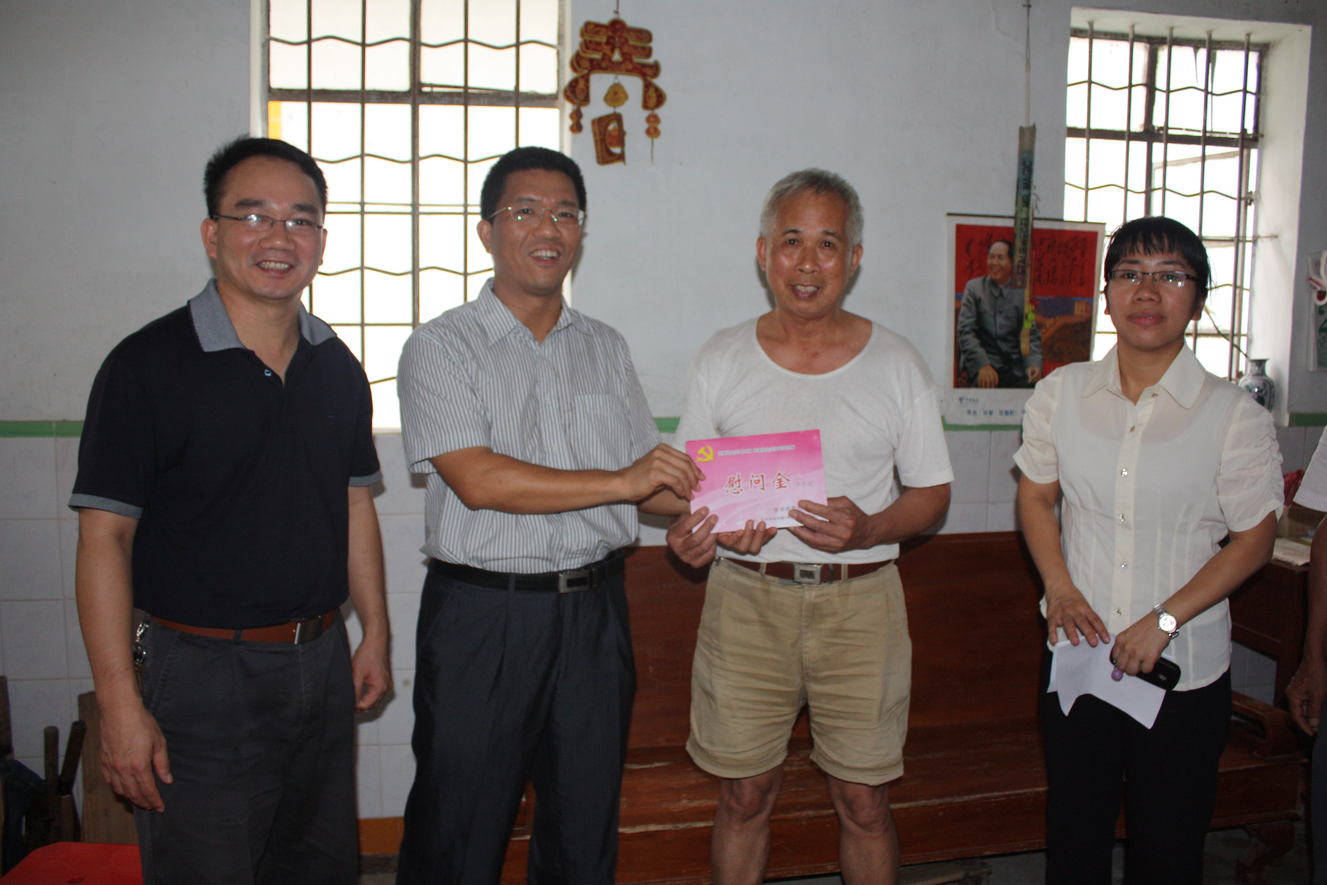 为弘扬党内团结互助精神,迎接建党91周年,6月27日下午,市府办副主任许朝辉在龙胜镇党委委员黄巧娜和副镇长梁北林的陪同下,到联塘村委会慰问困难党员,并送上慰问金和慰问品。