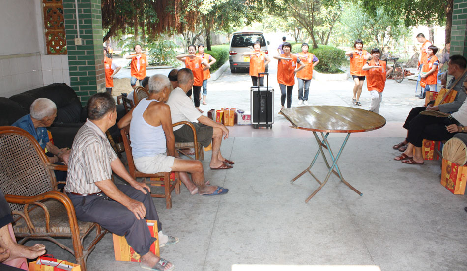 在镇敬老院,义工们还为公公婆婆表演了百姓健康舞,在欢乐的气氛中把中秋、国庆最美好的祝愿送给每一位老人,公公婆婆们都开心得合不拢嘴,一位公公称赞道:“今天我们好高兴,多谢你们在中秋节前为我们送上精彩表演和礼品,我也祝你们中秋节快乐。”