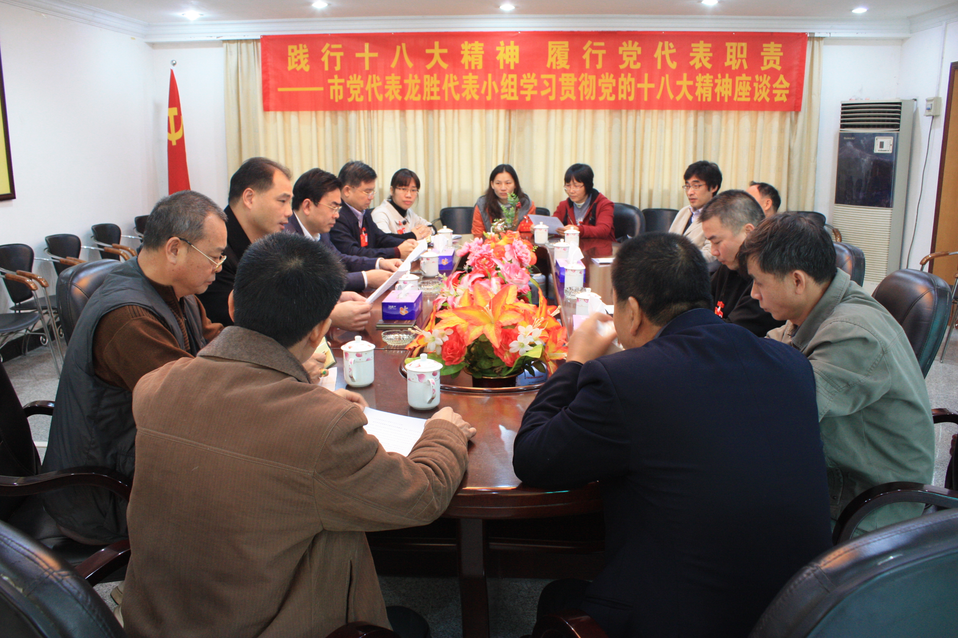 副市长凌华威带领14名市党代表,在龙胜镇开展主题为“践行十八大精神 履行党代表职责”的学习贯彻党的十八大精神座谈会。