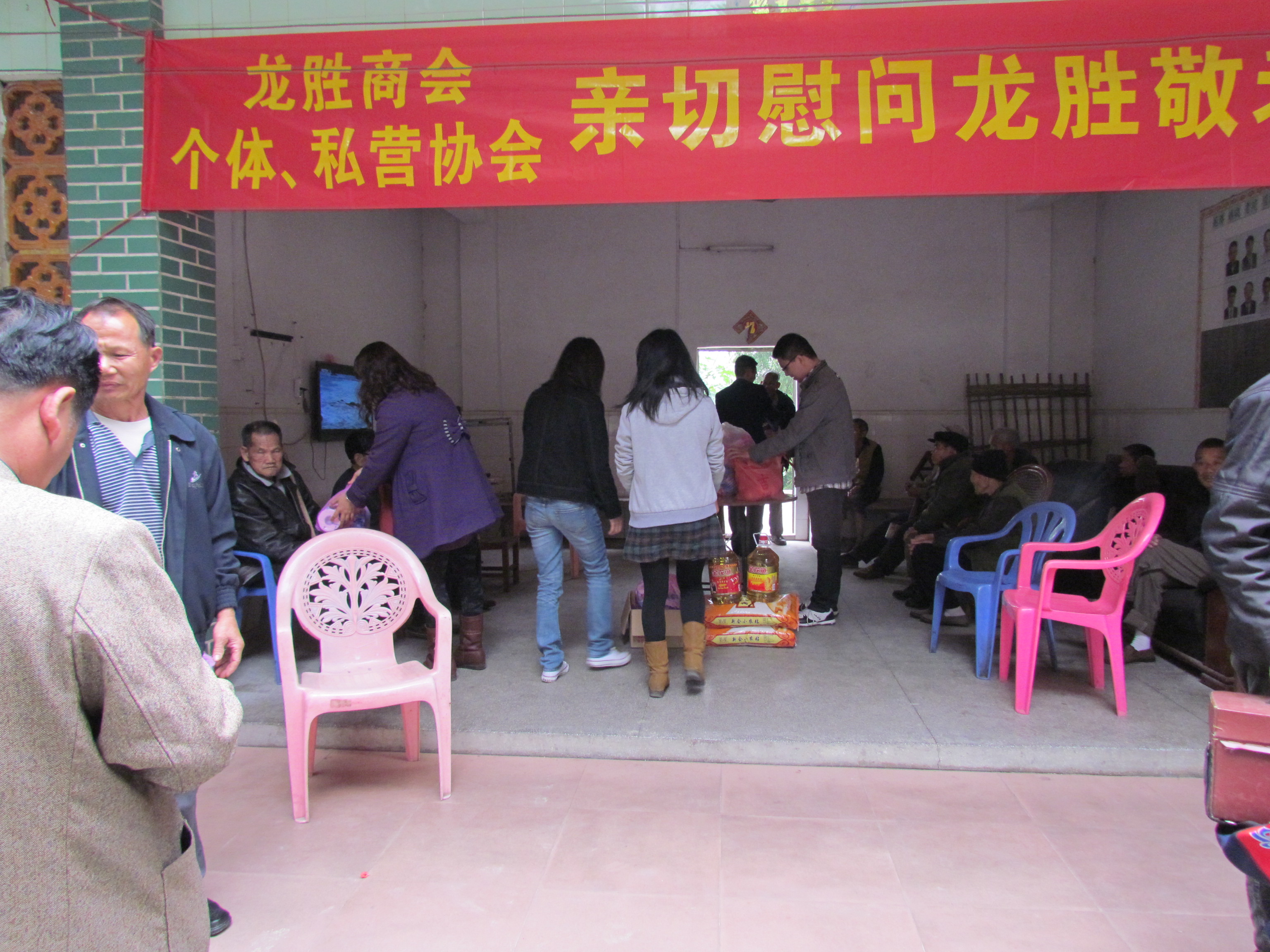 2013年新春将至,为进一步弘扬中华民族敬老爱老的传统美德,使孤寡老人们过上一个欢乐祥和的春节,1月23日下午,龙胜商会心系敬老院的老人们,商会会员们在常务副会长张景辉的带领下,联同个体、私营协会一行10多人前往龙胜镇敬老院开展春节前送温暖慰问活动。