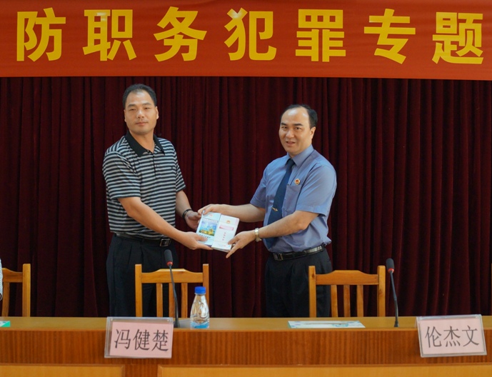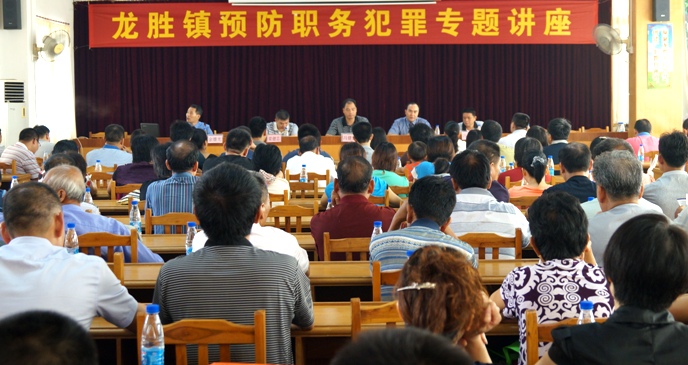 为了进一步提高广大农村干部的法律知识,筑牢拒腐防变的思想防线,深入推进农村基层党风廉政建设。7月3日,龙胜镇举办了预防职务犯罪专题讲座。镇机关在编干部职工、村(社区)全体干部及今年新发展党员等150多人参加了学习。市检察院副检察长伦杰文向龙胜镇赠送了预防职务犯罪的宣传学习资料。