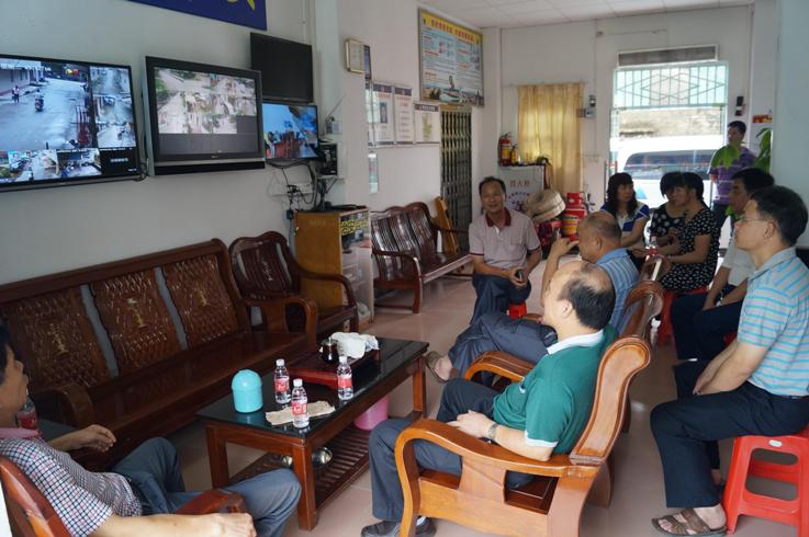 人大视察组一行11人首先来到石桥圩社区,参观了社区新安装的视频监控设备。据陈洪络书记介绍,石桥圩现有18个视频监控摄像头,分布在圩内各个主要路口、市场、卫生院、幼儿园门口等人员密集的地方,自圩内安装视频监控后,治安环境得到明显改善,同时对纠纷案件的处理起到积极的作用。
