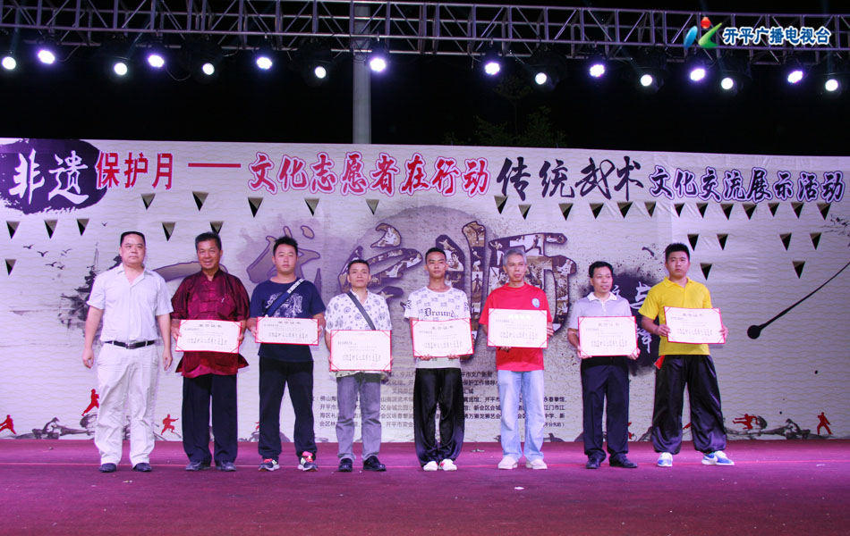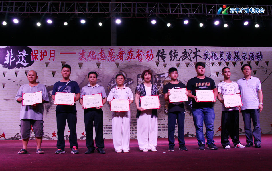 广播电台 梁立媛】6月6月晚上,“非遗保护月——文化志愿者在行动,传统武术文化交流展示活动”在东汇城东门广场举行,来自佛山、江门、新会、台山、亚星