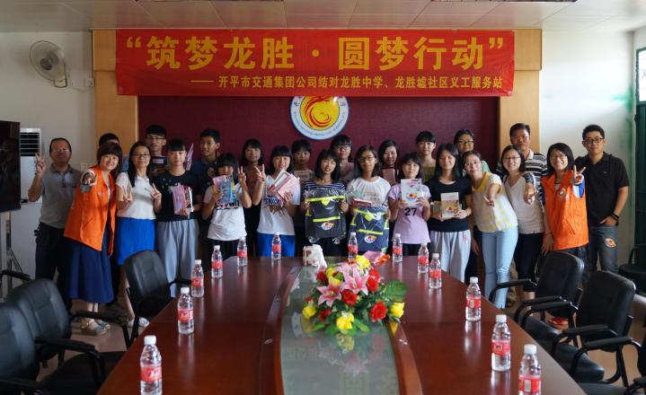 为进一步推动龙胜镇青少年培养良好的阅读习惯,6月16日下午,市交通集团公司结对龙胜中学、龙胜墟社区义工服务站联合举办了“筑梦龙胜·圆梦行动”爱心书籍赠送活动。市交通集团公司青年团员代表与义工们为龙胜中学的优秀学生赠送了课外书籍,每本书都印有“中国共青团·青春正能量”的标识,对学生来说这是他们最想拥有的礼物,他们对知识的渴求感动了在场的每一位义工。