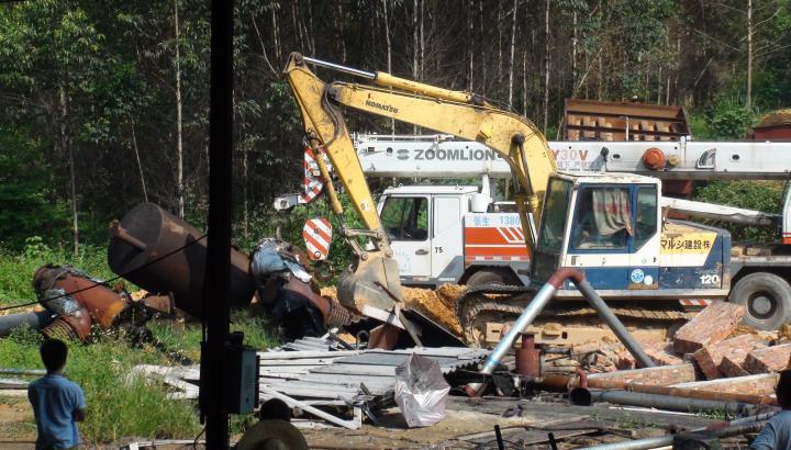 6月30日下午,龙胜镇组织镇城环局、派出所、工商所、供电所等部门单位开展联合执法行动,依法对黄村村委会辖区内一间无牌的提炼橡胶油厂进行清拆,清拆建筑物200多平方米、炼油设备2台。【信息员:吴健楚】
