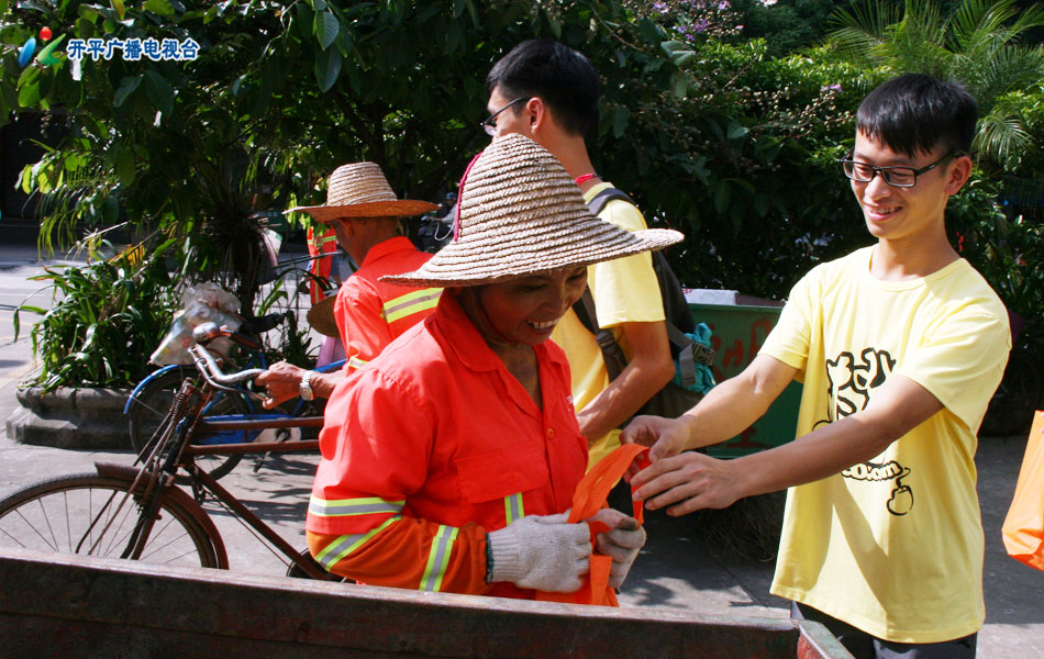 义工网友分别来到城区曙光路和升平路,为正在一线工作的环卫工人送上清凉小礼包,并到市环卫处送上60箱凉茶。环卫工人连声道谢:“义工为我们环卫工人送凉茶,我很开心、很高兴,大家都辛苦了,我们做好我们职责而已。”