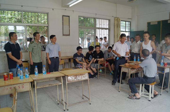 8月10日,龙胜镇征兵体检工作在龙胜中学全面展开,233名适龄青年参加今年体检。镇长利俊义一行在镇武装部部长冯永欣的陪同下到征兵体检现场检查指导工作。