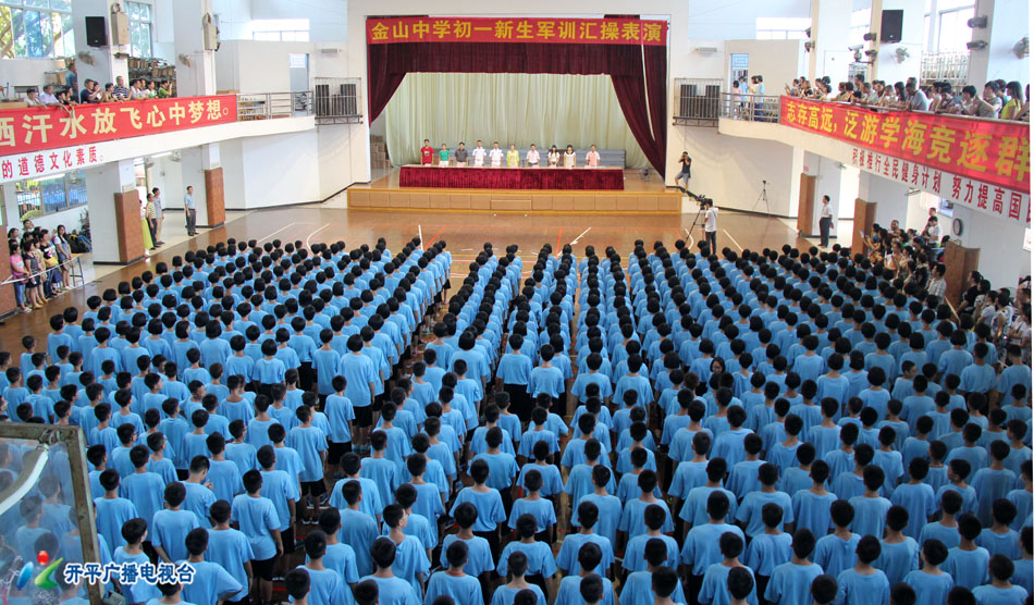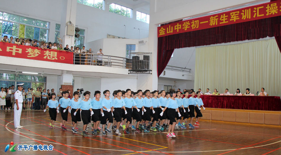 这是市金山中学初一新生军训汇操表演,至此,为期五天的新生军训圆满结束。