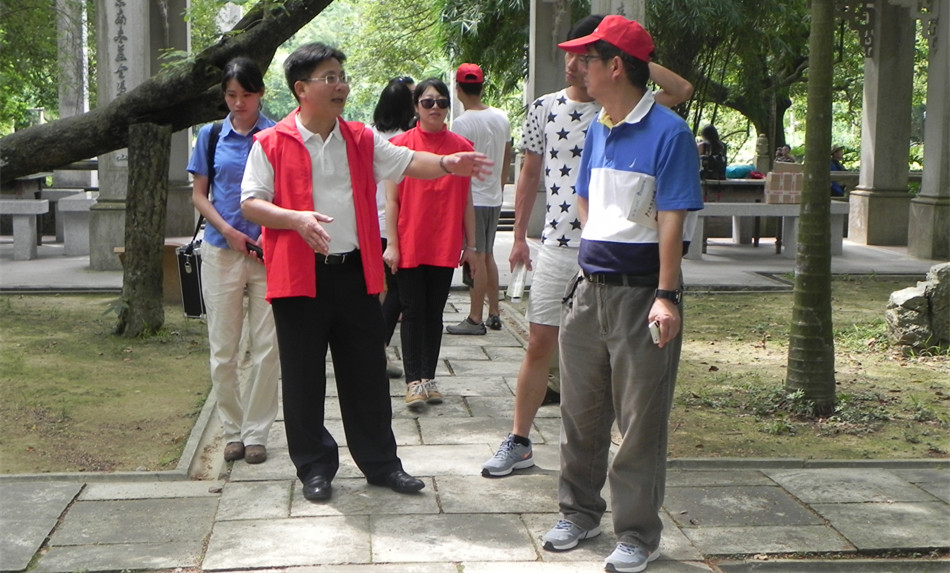 在立园服务的简锦聪常委接待了来自台山的游客。他深入、到位的讲解内容受到了不少游客的赞赏。