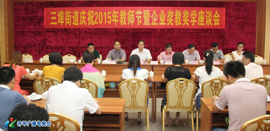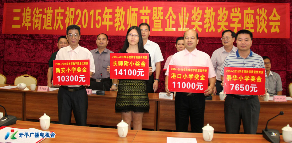 广播电视台 余映意】9月9日上午,三埠街道举行庆祝2015年教师节暨企业奖教奖学座谈会,10多万元奖教奖学金表彰辖区内教育工作先进单位和个人。