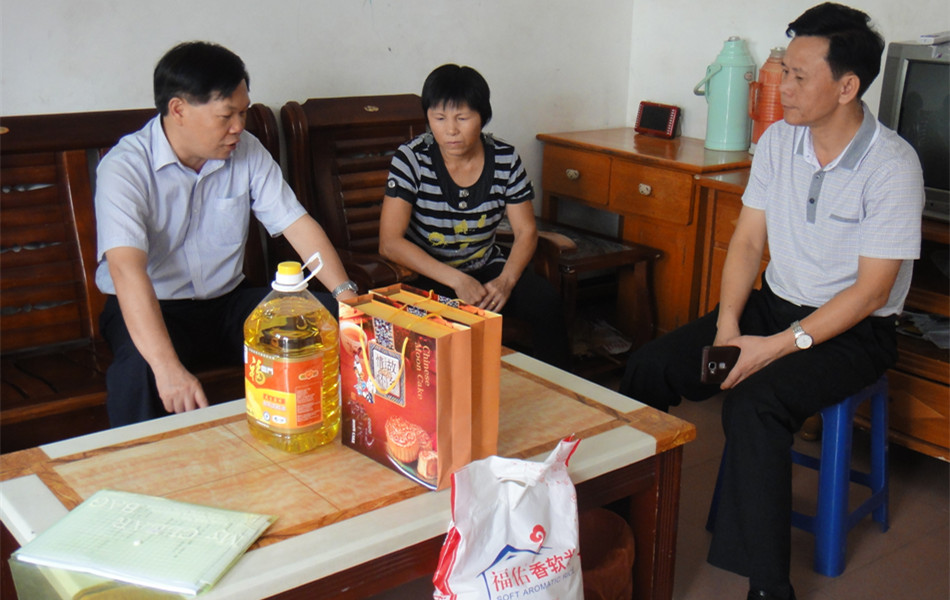 在金鸡镇有关领导的陪同下,慰问组一行深入到精准扶贫对口帮扶的帮扶户家中,详细了解了帮扶户近段时间的生产、生活情况,并跟他们商讨研究为他们制定的帮扶措施,并提前为他们送上节日的祝福和慰问物资。
