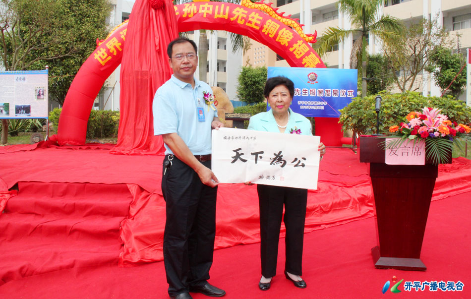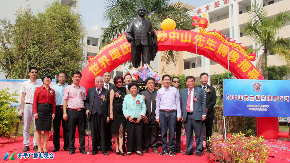 世界谭氏中学揭幕落成,这是她个人出资在世界各地捐赠的第162尊孙中山铜像。