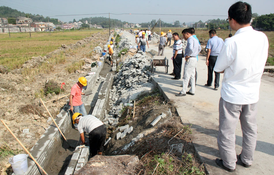 与会人员参观塘口镇卫星村委会冬修水利现场