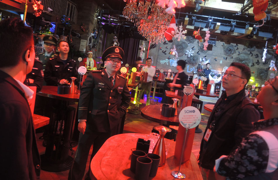 12月25日下午,谭伟强局长带队检查水口镇煌冠KTV