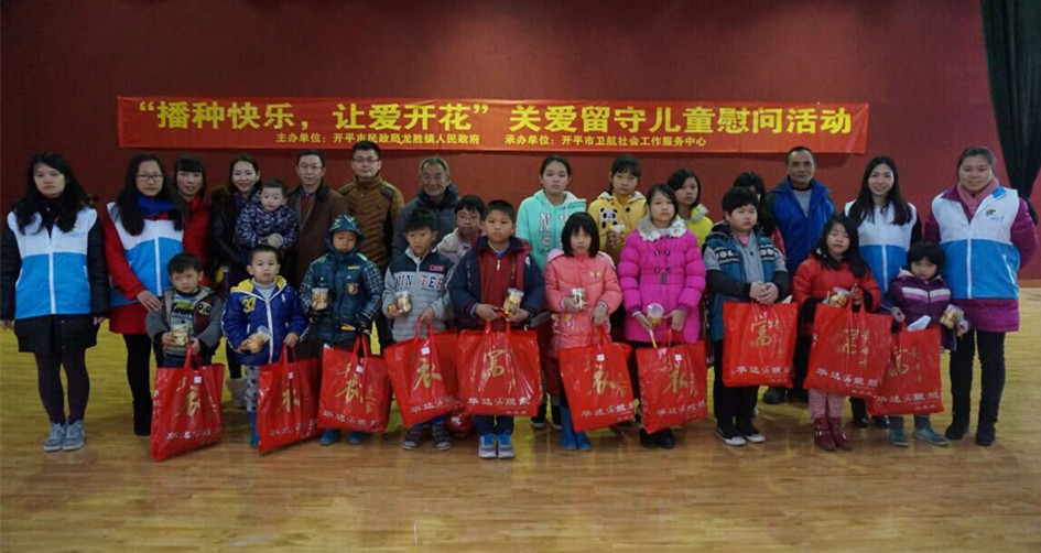 民政局、龙胜镇人民政府、卫航社会工作服务中心联合在龙胜镇人民政府礼堂举行“播种快乐,让爱开花”关爱留守儿童慰问活动。