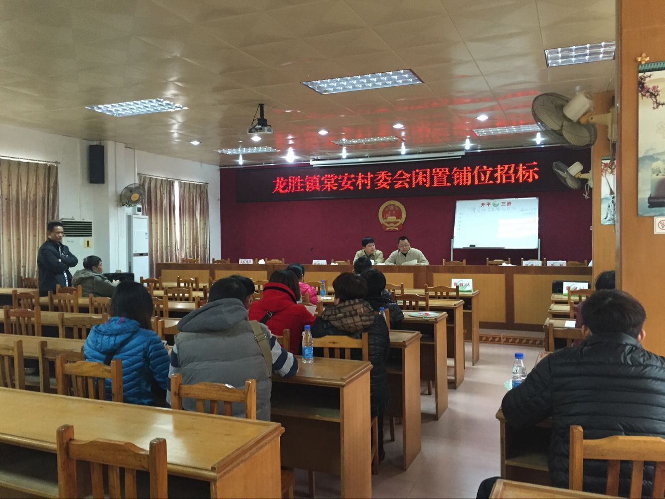 2月24日,龙胜镇三资服务中心在开标室举行闲置铺位资产交易竞投会,龙胜镇三资服务中心人员、发包方、竞投人、村民代表等参与此次会议。